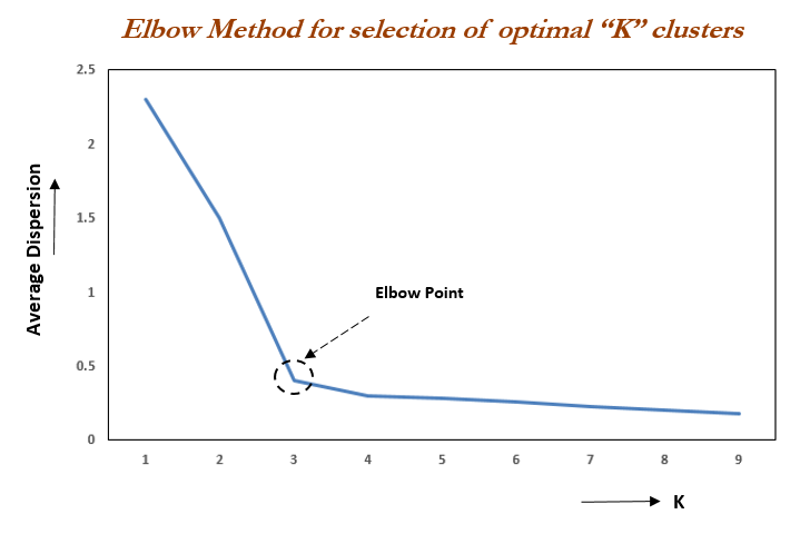 In short, you pick a range of clusters (k), say 2-10, and for each cluster you calculate the ‘Within-Cluster Sum of Square Errors’ (WCSSE), and plot the results on a chart.