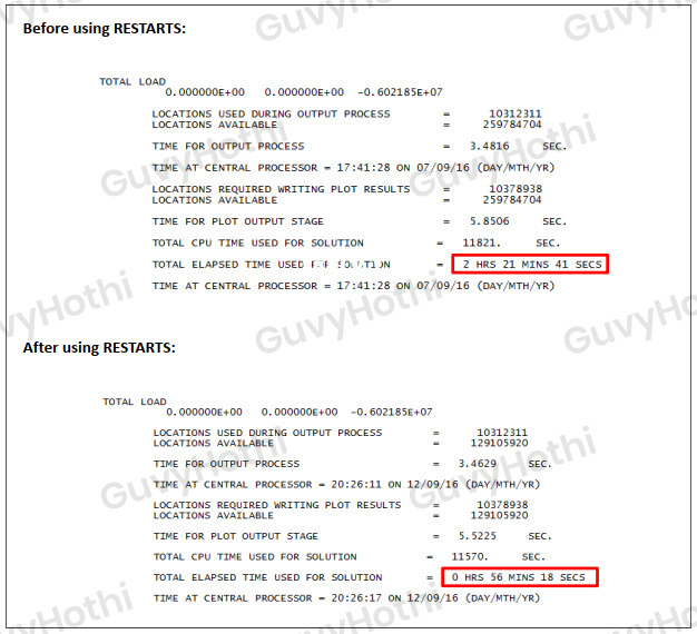 Using RESTARTs, I cut each analysis from 2.5 hours to just 1 hour, which is nearly a 60% time saving.