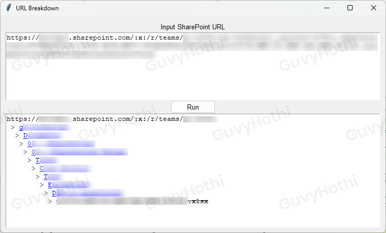 It cleans the link (i.e. decodes it back into the format we’re most common with), breaks it into parts, and shows each folder level as a clickable link, with the last line (the actual file) being struck through to visually indicate it’s no longer accessible.