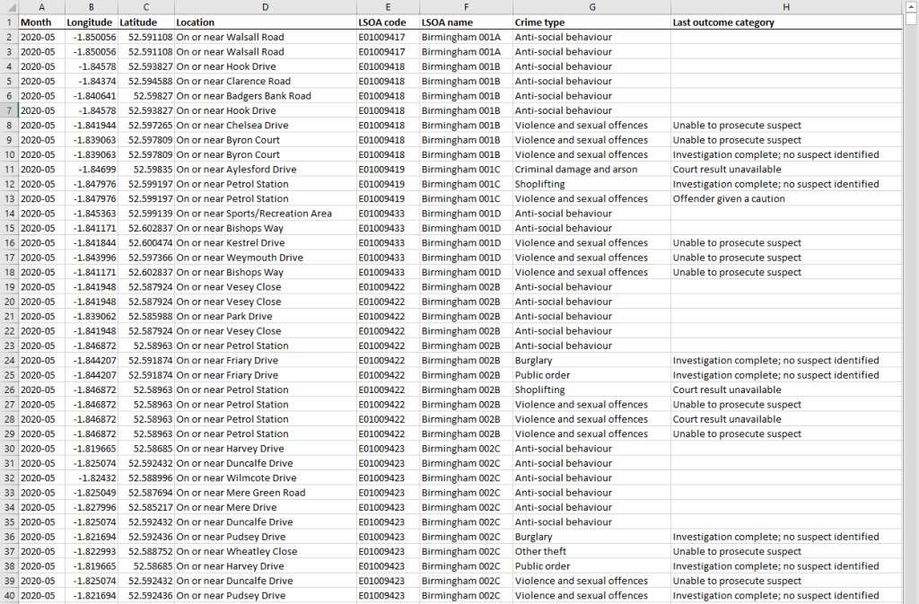 Eventually, I realised the raw data is publicly available anyway on local council and gov websites (in CSV format, with time, place and crime type).